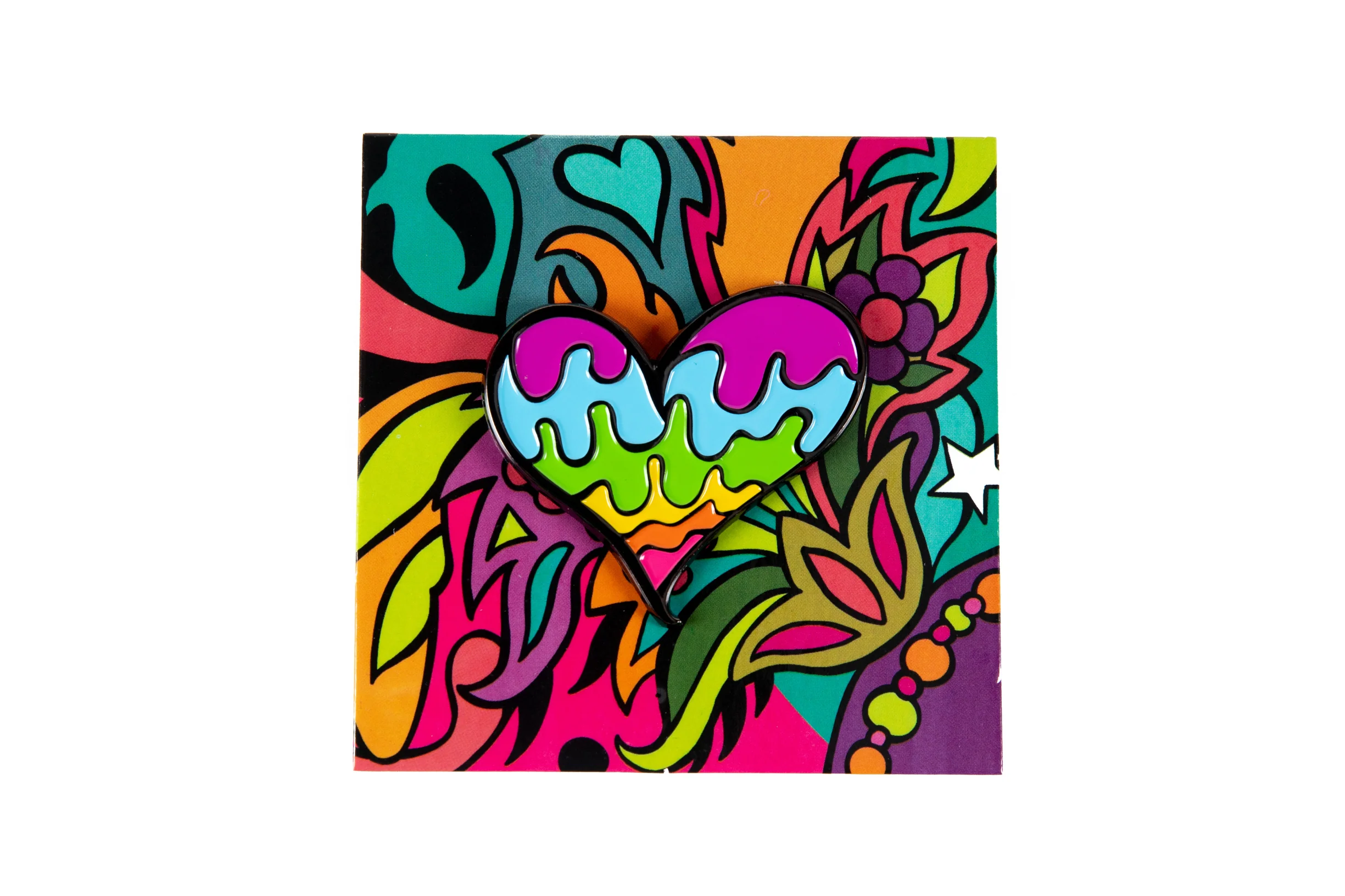 Falling in love has never been easier. The melting heart rainbow pin by Ellie Paisley is the perfect gift for yourself or someone you love. With two pins securing the rainbow heart pin, you’ll be sure to get showered with compliments when friends see your rocking new pin on your favorite Dime Bag.